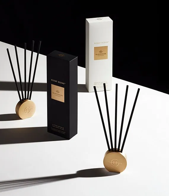 • The Scent Scene™ Duo includes two individually packaged Scent Stems™ fragrances: Kyoto in Bloom Camellia & Lotus and Lost in Amalfi Sea Mist. To use place your Scent Stems™ of choice into the metal vessel, ensuring it's placed on a flat surface away from open windows or vents. After 30 days, or a time of your choosing, swap out the Scent Stems™ for the other supplied fragrance.