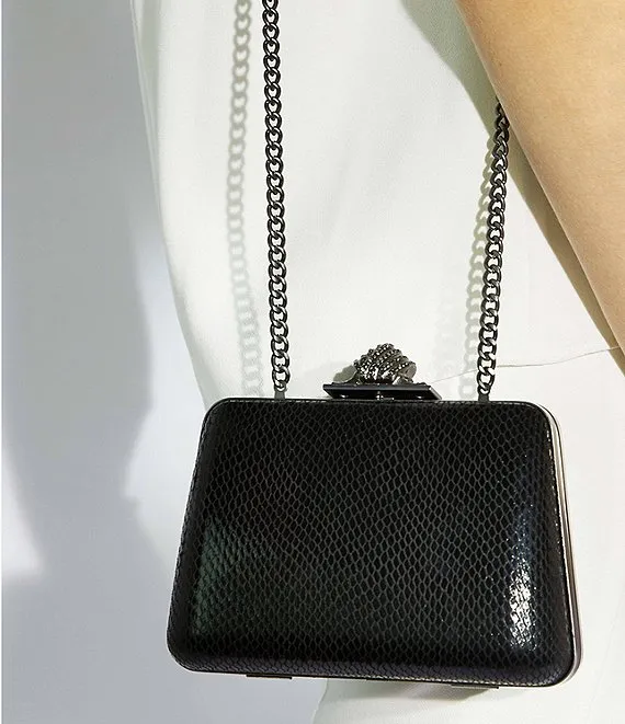 From Dune London, the Become Embellished Embossed Faux Leather Clasp Clutch Bag features: