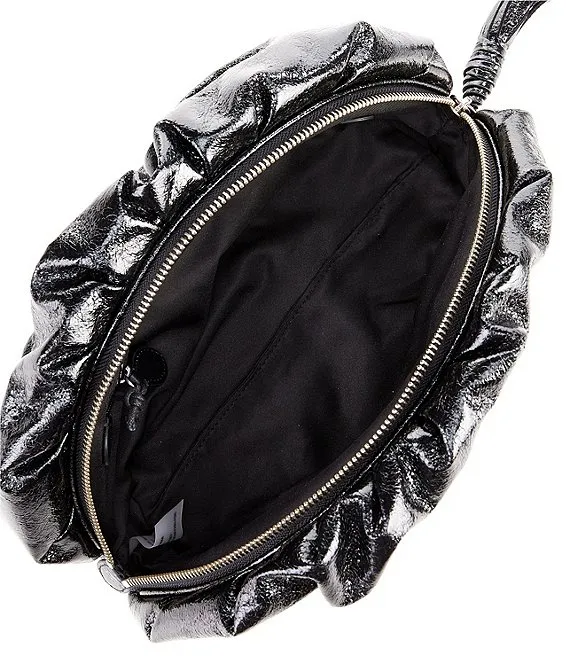 From REBECCA MINKOFF, the Black Metallic Ruched Clutch features: