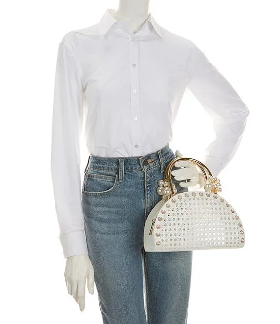 Btb Los Angeles Caned Leather Ellie Pearl Satchel Bag