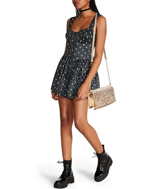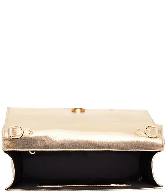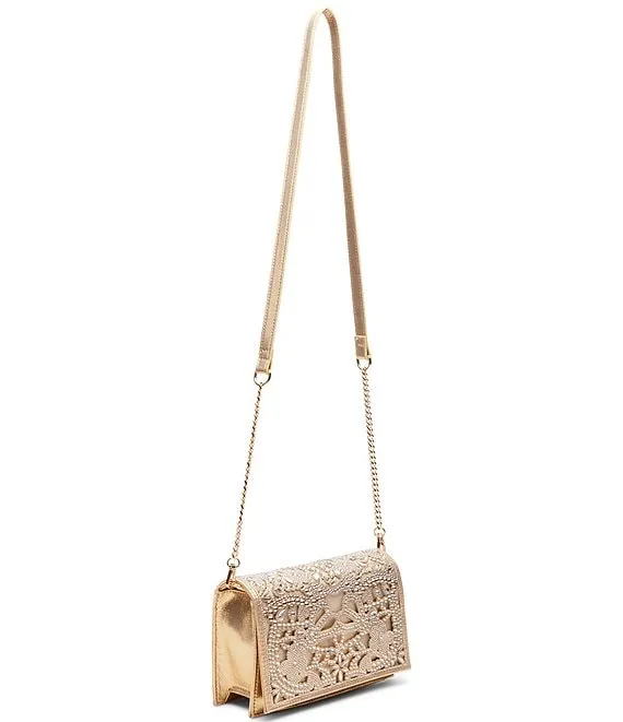 From Betsey Johnson, the Cut Out Sparkler Gold Crossbody Clutch features: