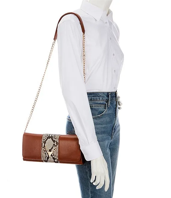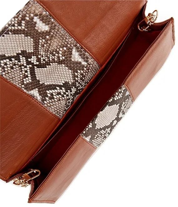 From Taxidermy, the Harper Saddle Leather with Natural Python Stripe Clutch features: