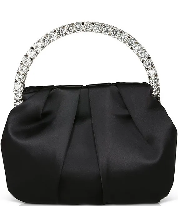 Jewel by Badgley Mischka Audrey Pleated Satin Pouch with Halfmoon Crystal Handle Bag