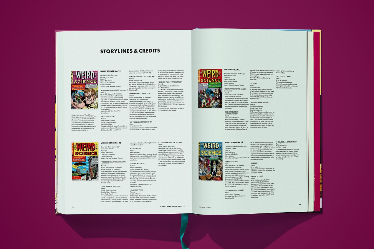 In Volume 1, TASCHEN presents the first eleven issues of Weird Science, meticulously recreating the comics in their original glory. Rather than recolor the artwork, this edition works with super-high-resolution photographs of each page as it was printed more than half a century ago, using modern retouching techniques to correct problems with the era��s inexpensive, imperfect printing. The result is a pristine product, keeping the character and feel of the classic pulp comic magazines, but freshly printed by a world-class press, produced without the economic or time constraints of the past.