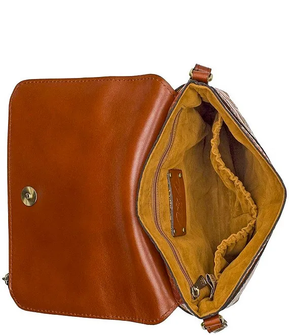 From Patricia Nash, the Corfu Burnished Rose Leather Crossbody Bag features: