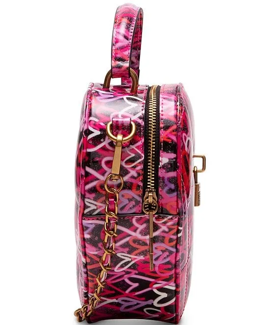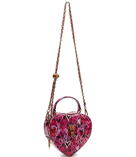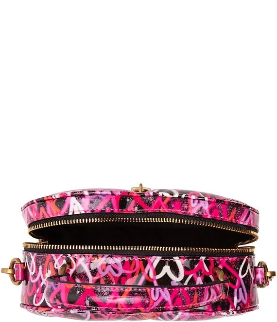 From Betsey Johnson, the Graffiti Heart Crossbody Bag features: