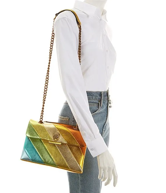 From Kurt Geiger London, the Large Kensington Metallic Green Striped Shoulder Bag features: