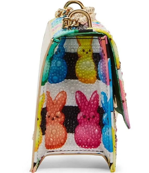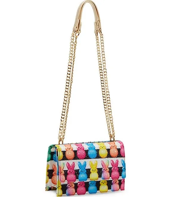 From Betsey Johnson, the Rhinestone Sparkler Peeps Crossbody Bag features: