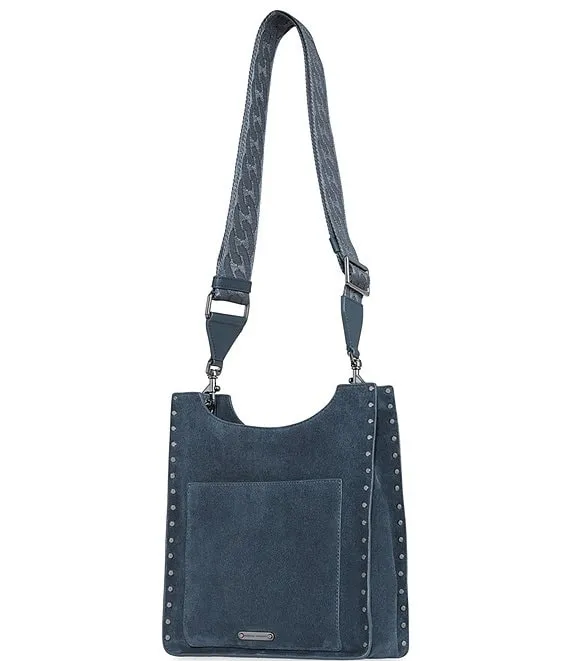 Suede Silver Hardware Darren Medium Feed Crossbody Bag