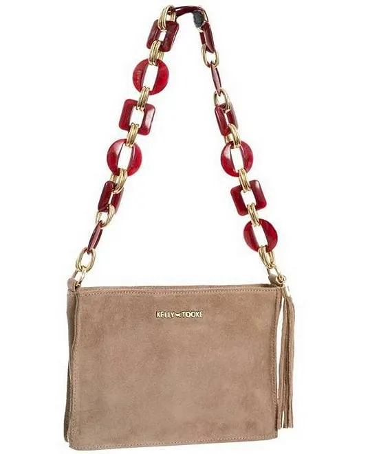 Kelley-Tooke Leather Berry Chain Side Tassel Clutch Crossbody Bag