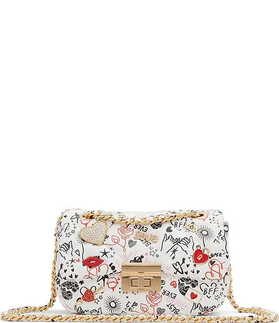 Lovesonggx Rhinestone Patches Embellished Crossbody Bag