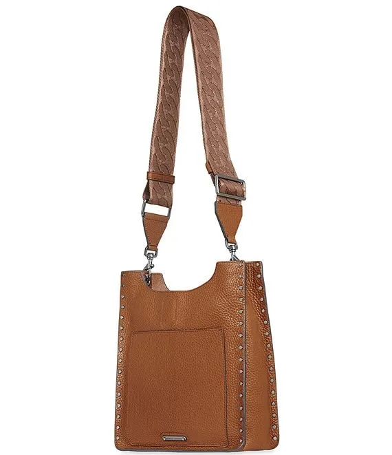 Bryant Medium Pebble Leather Gunmetal Studded Convertible Crossbody Shoulder Bag