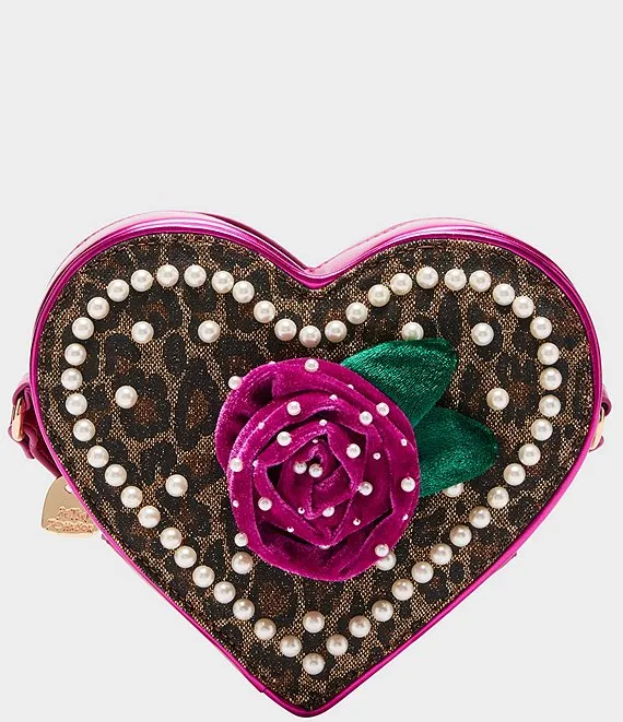 Leopard Heart Pearl Flower Crossbody Bag