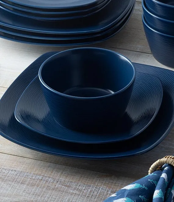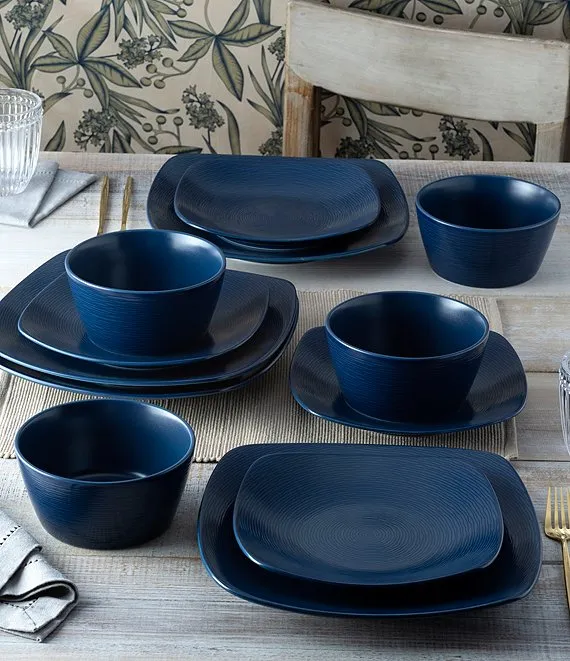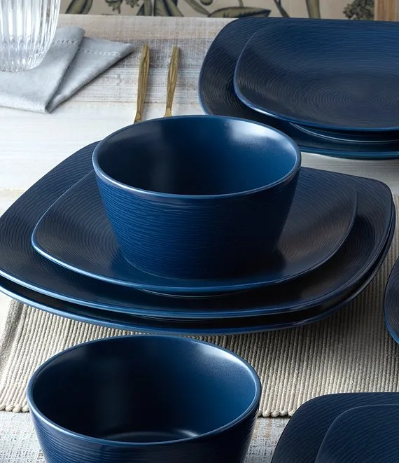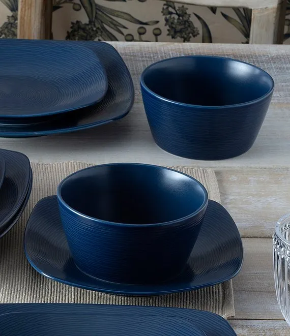 From the Colorscapes Navy-on-Navy Swirl Collection by Noritake, this 12-piece square set features: