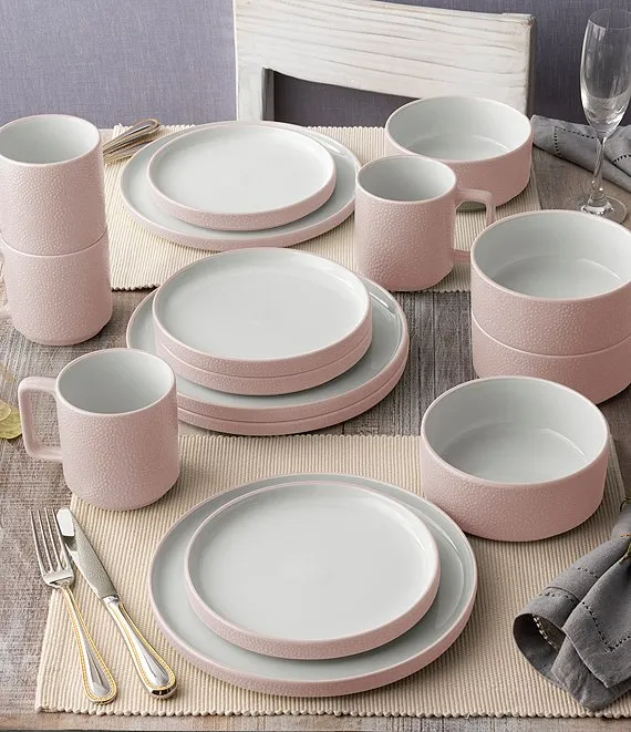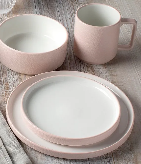 ColorTex is a distinctly contemporary collection from Noritake. Created in porcelain, and safe for use in the microwave and dishwasher, the collection features multiple items, showcasing a glossy pebble texture on the outside, and a bright-white glazed interior. Each plate in the collection is matched in size so that it can serve as a lid for one of the bowls, and even the mug. This modularity makes storage fast and simple and provides endless options for serving and creativity in dramatic tablescapes.