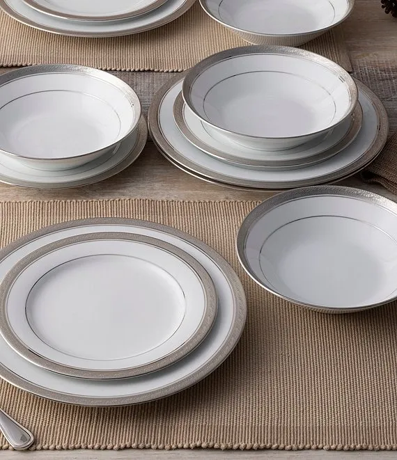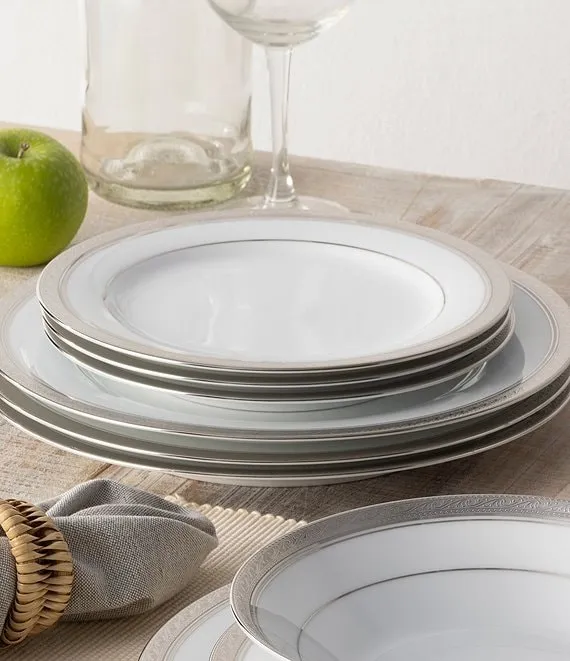 From the Crestwood Etched Platinum Collection by Noritake, this set of 4 salad plates features: