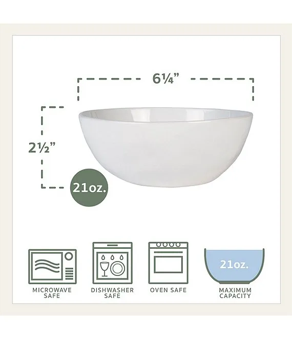 - Soup/cereal bowls approx. 6.25", 21-oz. capacity