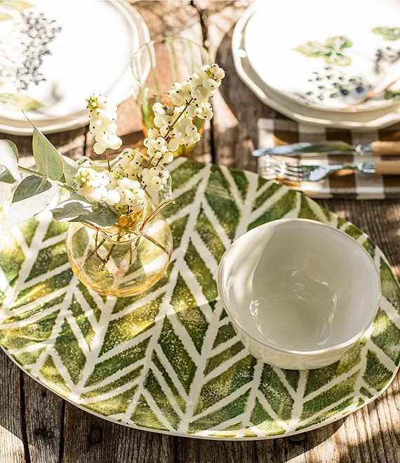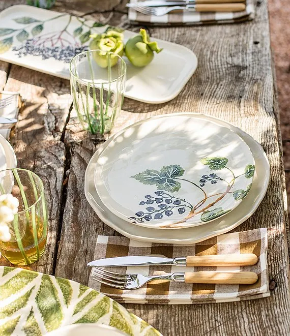 A fresh Italian take on botanicals, the Foresta Primavera Black Currant Salad Plate features juicy berries on a crisp, white background.