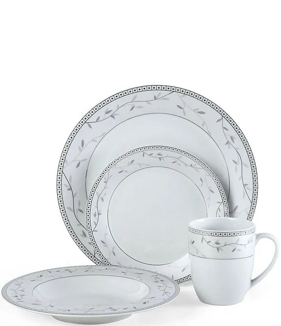 Beautifully transitional design, our Platinum Vine dinnerware is marked by an understated elegance accented with intricate platinum details.