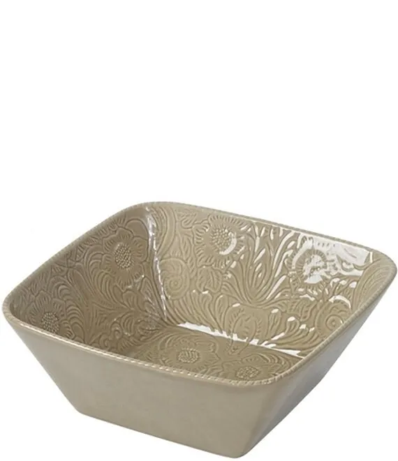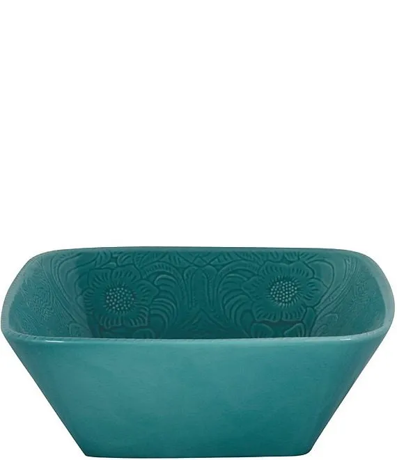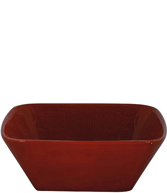 These stunning glazed Serving Bowls create a beautiful presentation that is truly fun with the embossed tooled leather detail.