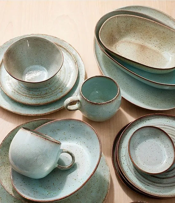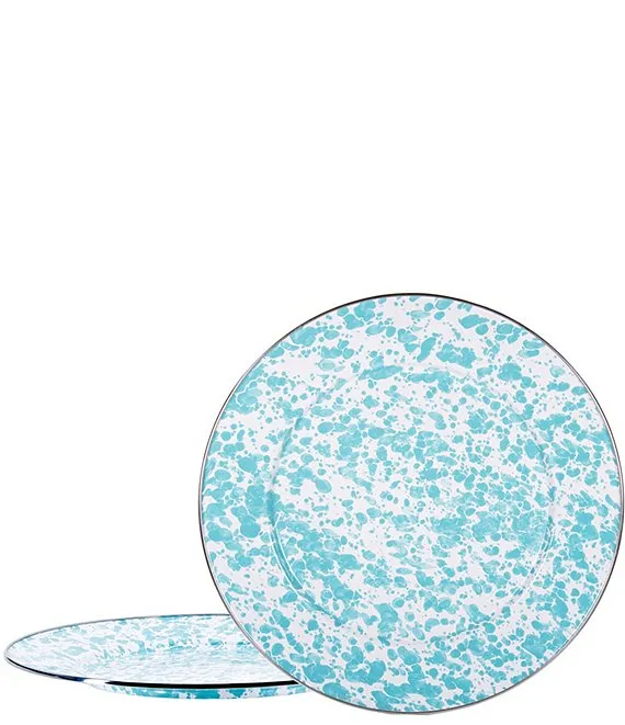 Enamelware Sea Glass Swirl Charger Plates, Set of 2