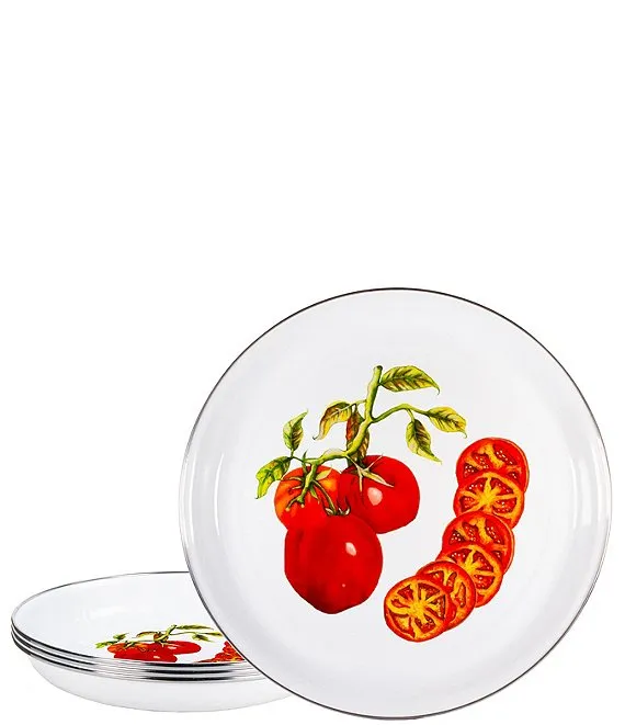 Enamelware Tomatoes Pasta Plates, Set of 4