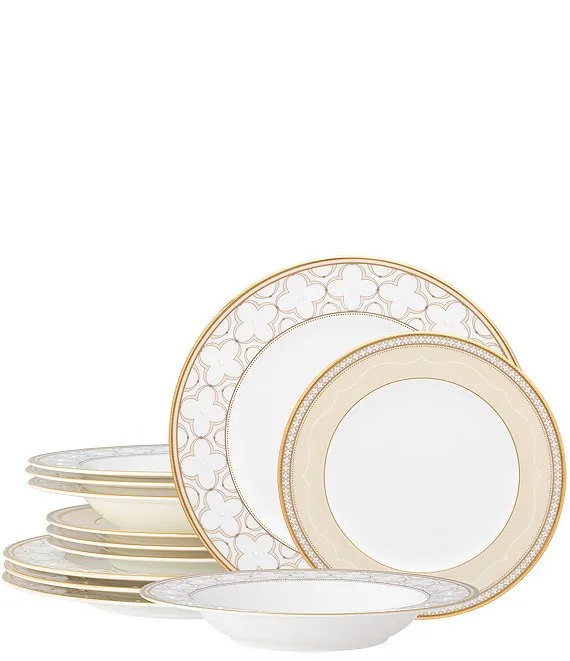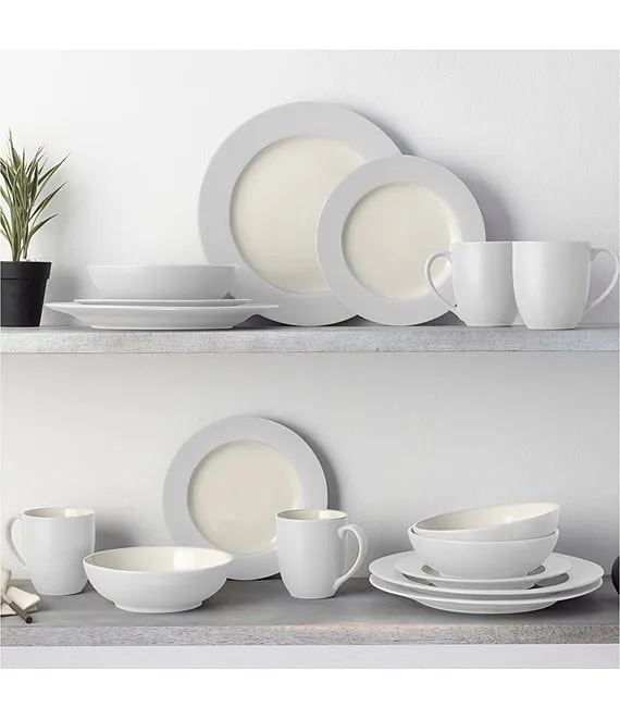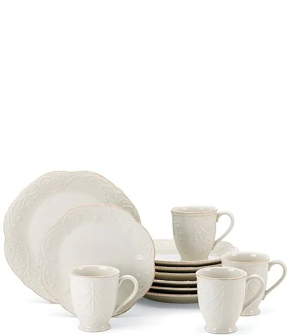 French Perle 2-Piece Plate & Mug 12-Piece Dinnerware Set