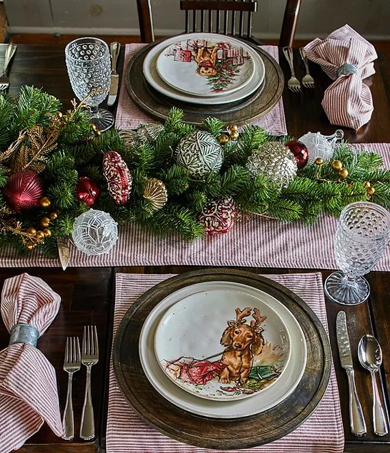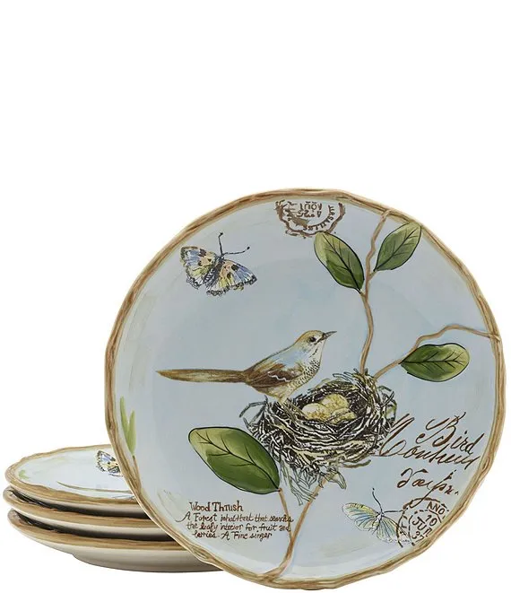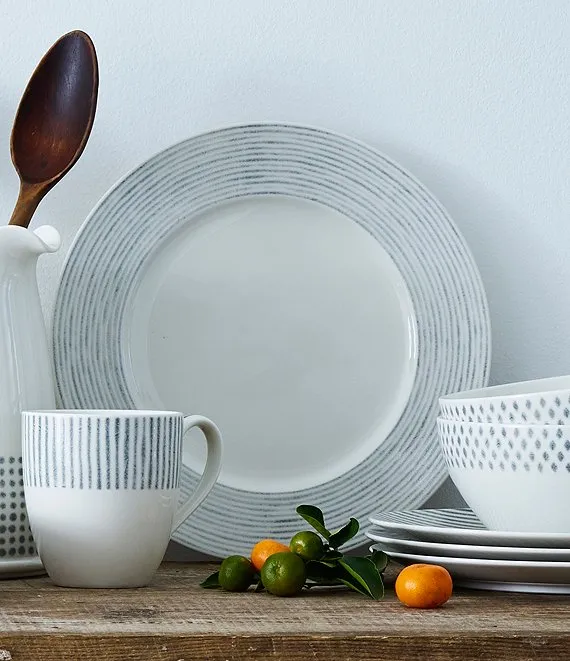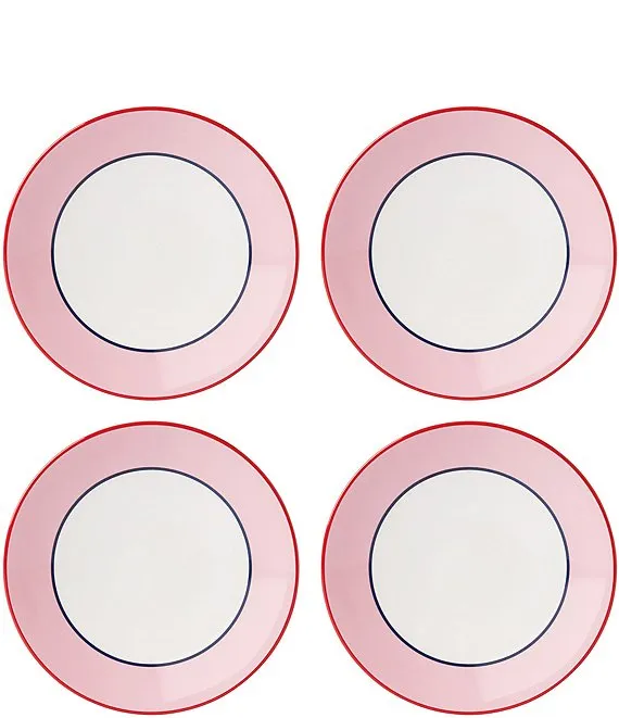 Hammock Collection Stripe Rimmed Dinner Plates, Set of 4