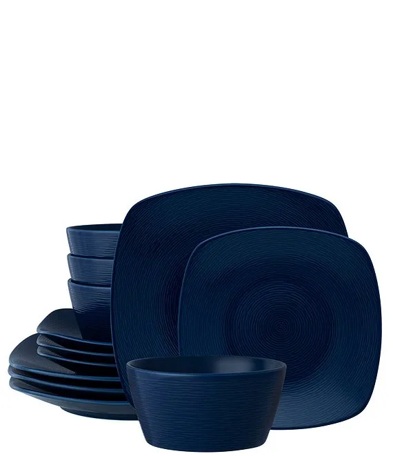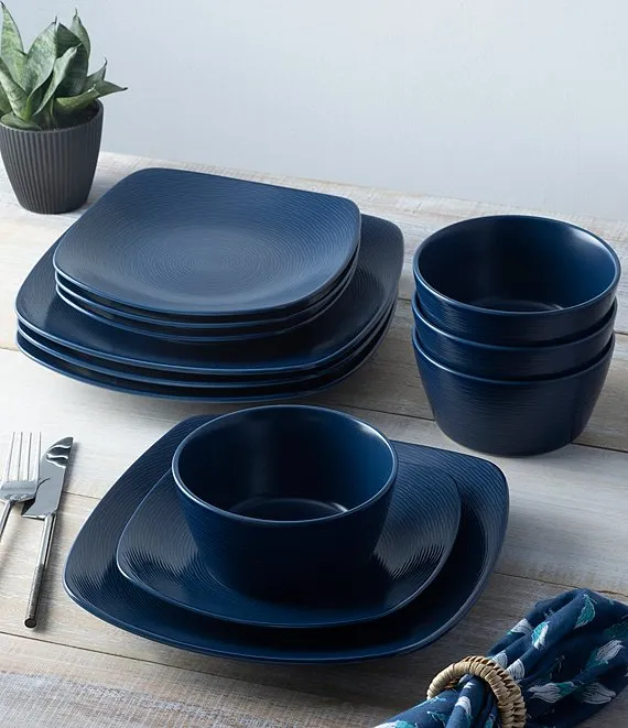 Colorscapes Navy-on-Navy Swirl 12-Piece Square Set