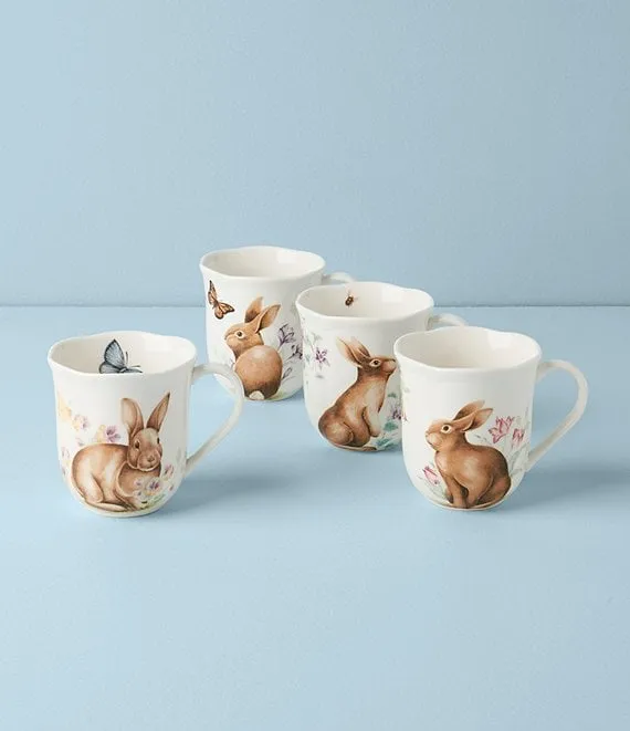 Butterfly Meadow Bunny Mugs, Set of 4