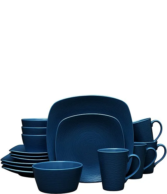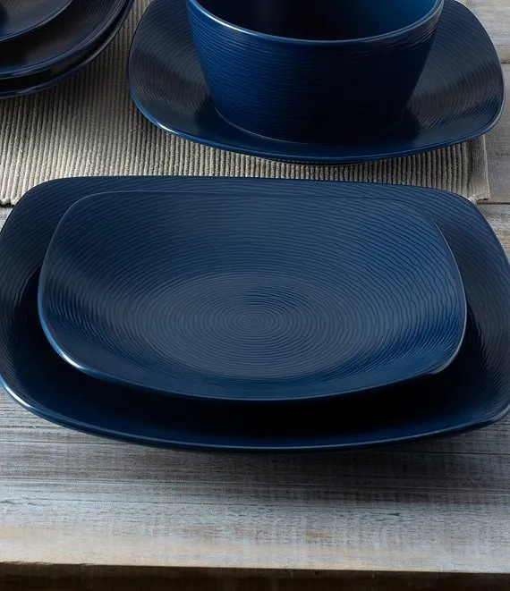 Colorscapes Navy-on-Navy Swirl Collection 16-Piece Square Set, Service For 4