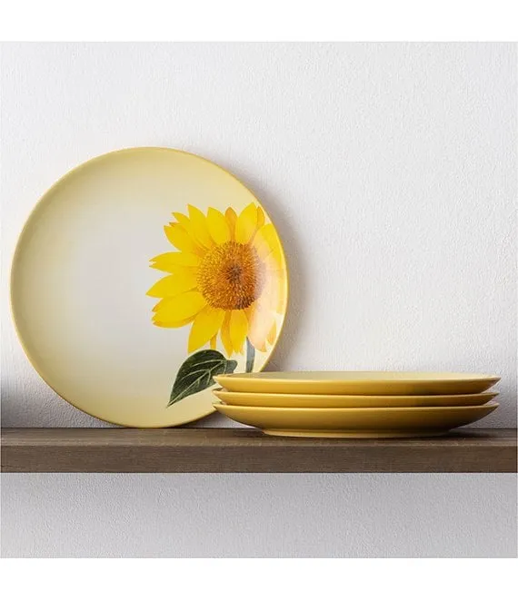 Colorwave Mustard Sunflower Accent/Luncheon Floral Plates, Set of 4
