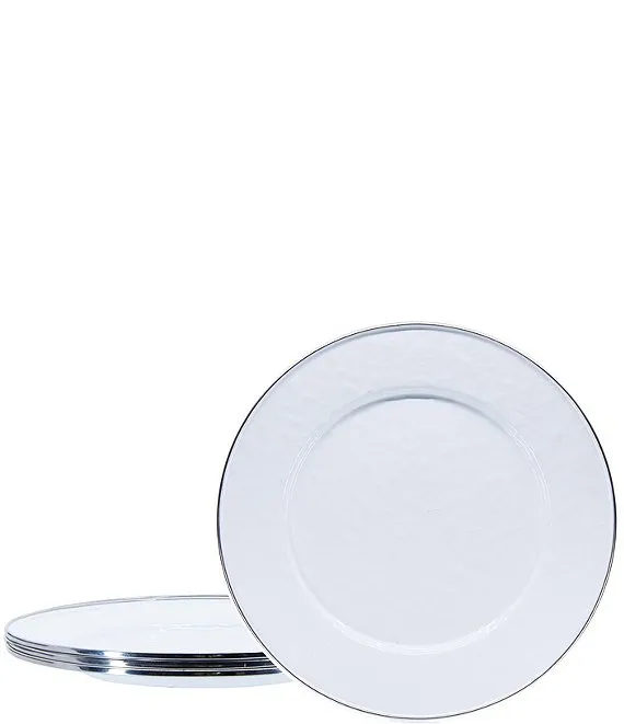 Enamelware Solid Textured White Dinner Plates, Set of 4