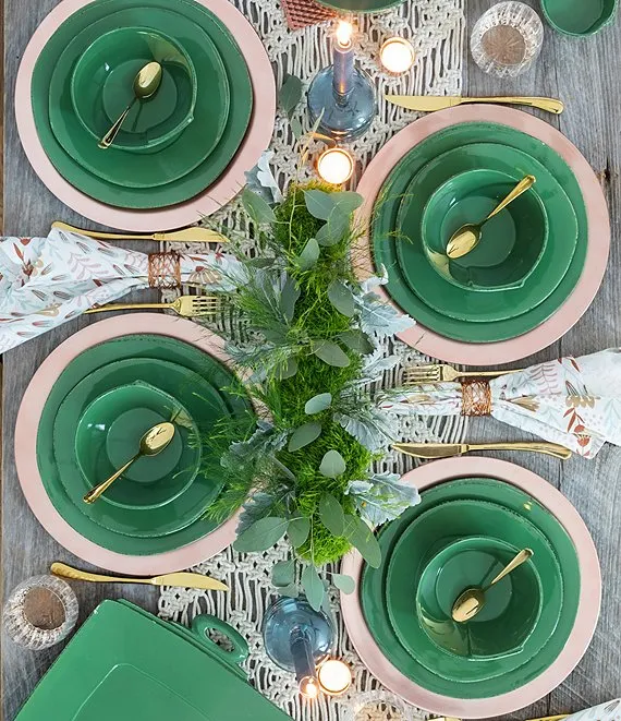 Colorwave Green Collection 16-Piece Square Set, Service For 4