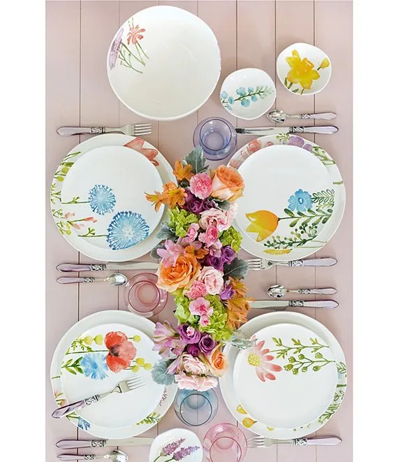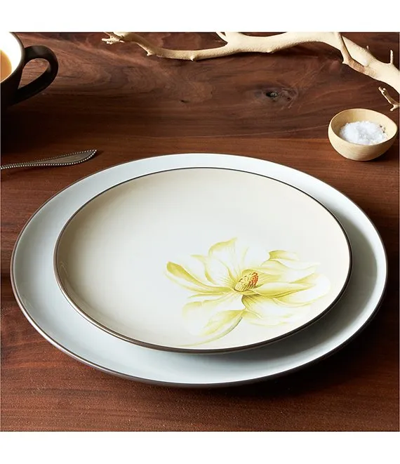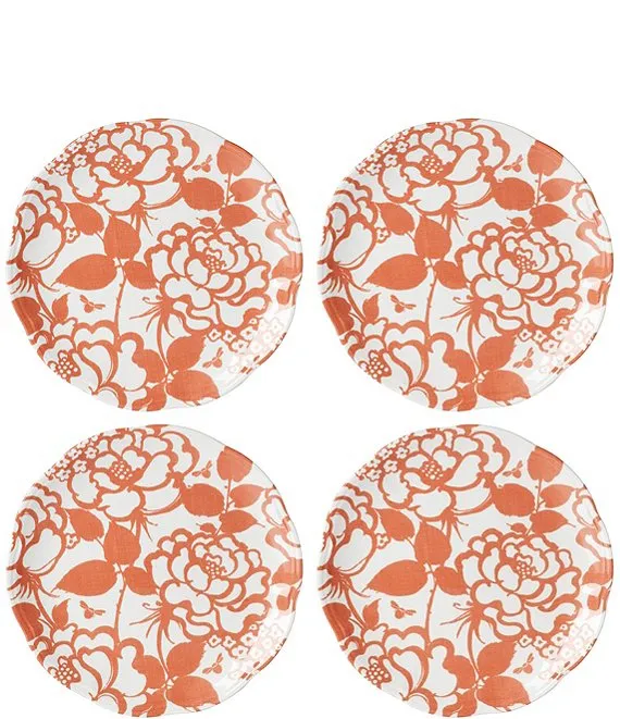 Colorwave Chocolate Magnolia Accent/Luncheon Floral Plates, Set of 4