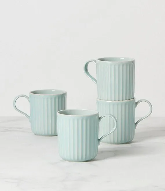 French Perle Collection Scallop Coffee Mugs, Set of 4