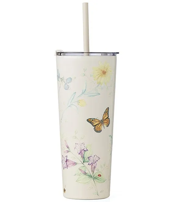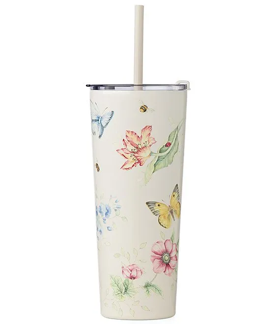 Butterfly-Meadow Cream Stainless Steel Tumbler With Straw