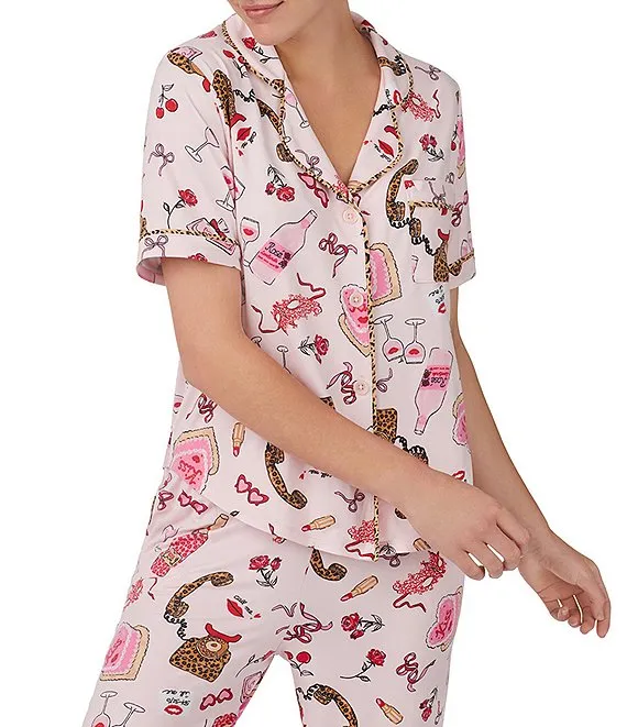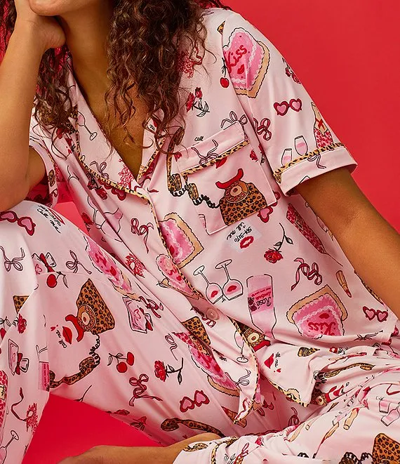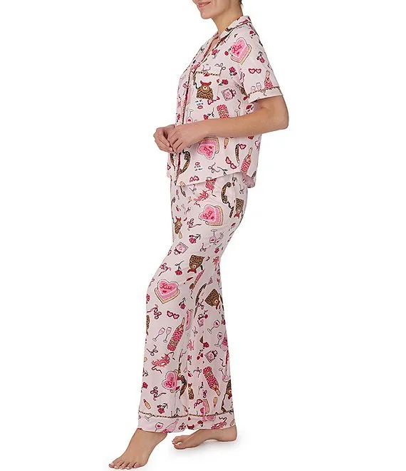 Short Sleeve Notch Collar Knit Nighttime Sweets Pajama Set