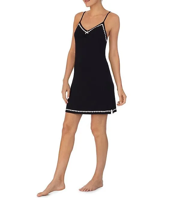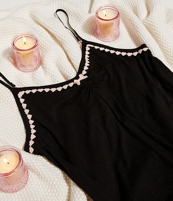 Solid Knit Sleeveless V-Neck Heart Trim Chemise