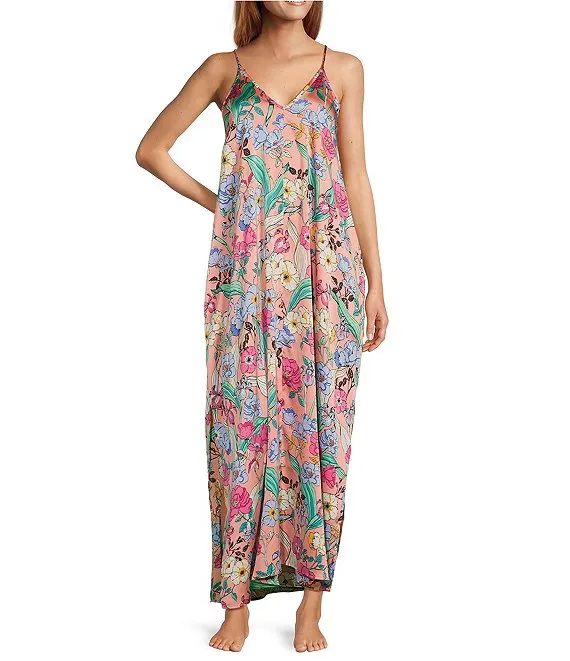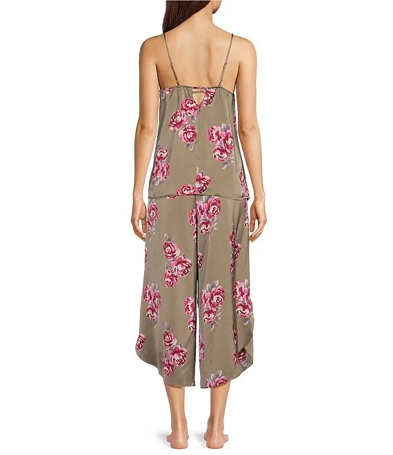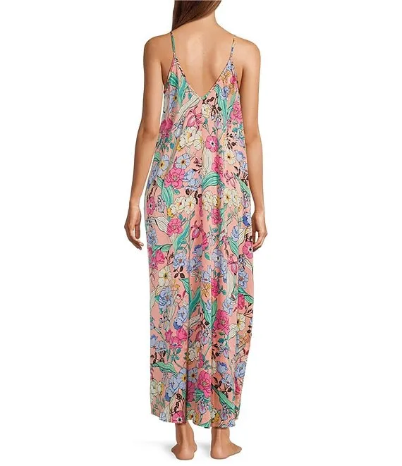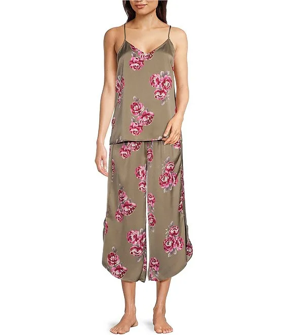 VAN WINKLE & CO. Hibiscus Print Woven V-Neck Satin Coordinating Sleep Top