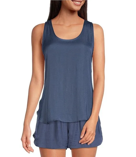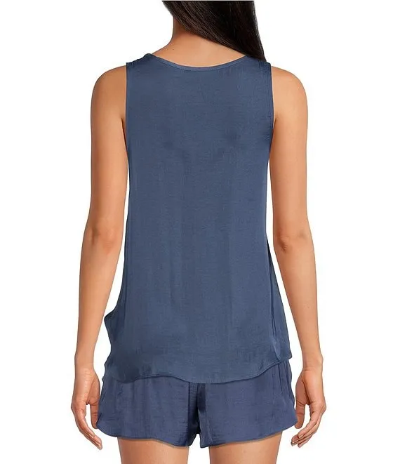 VAN WINKLE & CO. Solid Woven V-Neck Satin Coordinating Sleep Tank