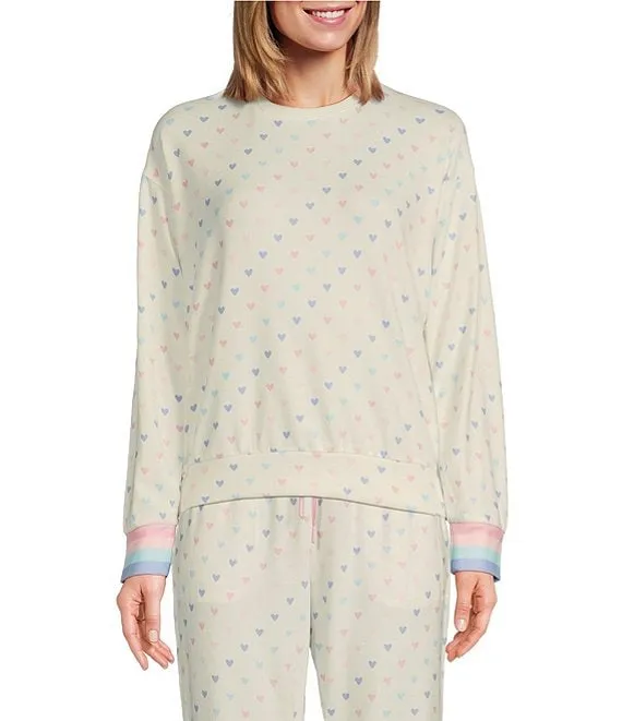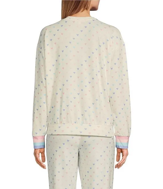 kate spade Brushed Cozy Jersey Heart Print 3/4 Sleeve Notch Collar Full Length Pajama Set