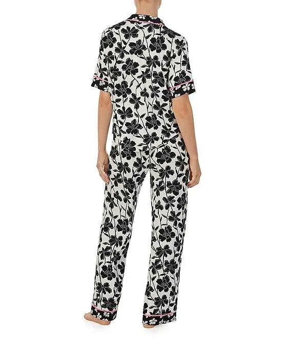 Botanical Print Short Sleeve Notch Collar Woven Sateen Pajama Set