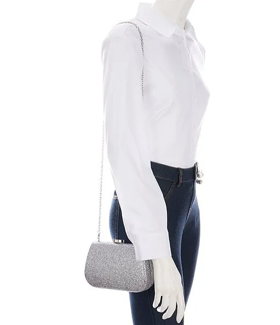 From Landry, the Metallic Textured Minaudiere Clutch features: