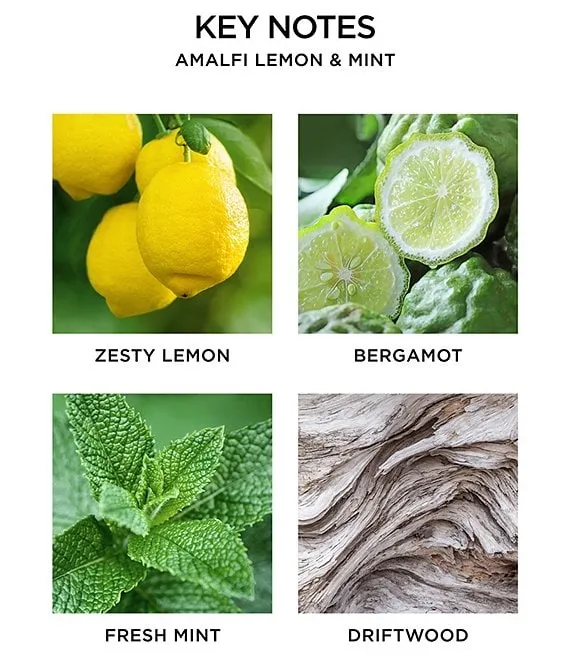 Evoke the essence of Italy’s Amalfi Coast with zesty lemon and orange bergamot blended with fresh mint and a hint of driftwood.
