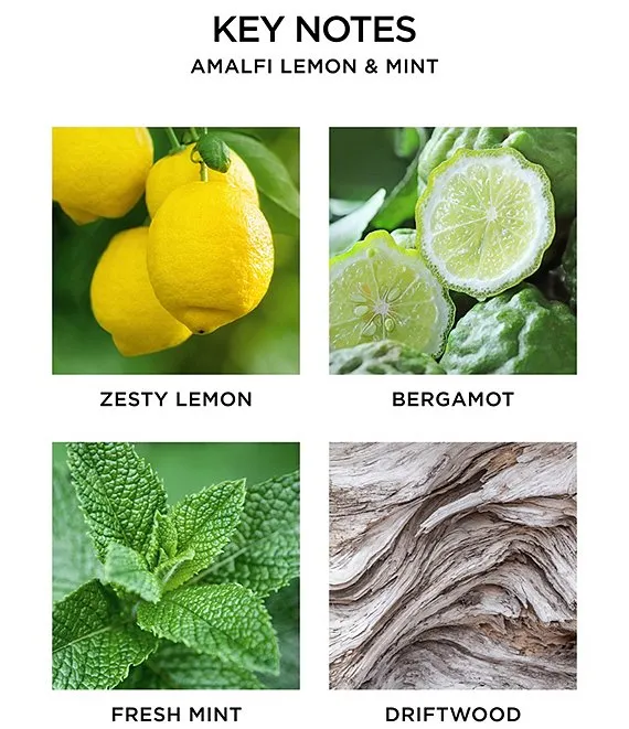 Evoke the essence of Italy’s Amalfi Coast with zesty lemon and orange bergamot blended with fresh mint and a hint of driftwood.