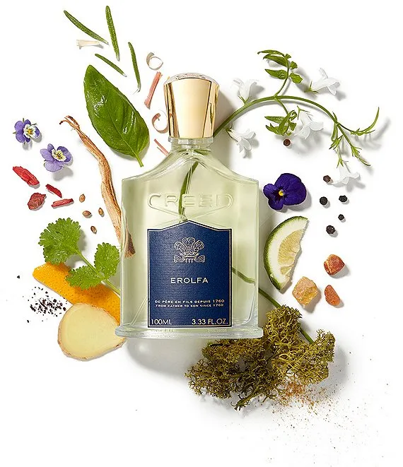 This oceanic fragrance is an ode to Creed family memories of sailing the Mediterranean: invigorating seas, salty air, and citrus-scented breezes. Not only is Erolfa a blend of nautical-inspired notes, the unique name is a mix of each family member's name: Erwin, Olivier's only son and perfumer protégé (ER); Olivia, Olivier's daughter (OL); and Fabienne, Erwin and Olivia's mother (FA). The result is Erolfa, an uplifting scent destined to make memories all its own.