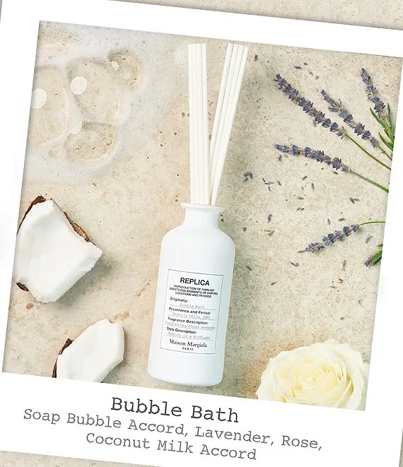 Inspired by the relaxing sensation of a warm bath, this home fragrance diffuser evokes the soft scent of soap, luxurious bubbles, and fresh florals filling the air.