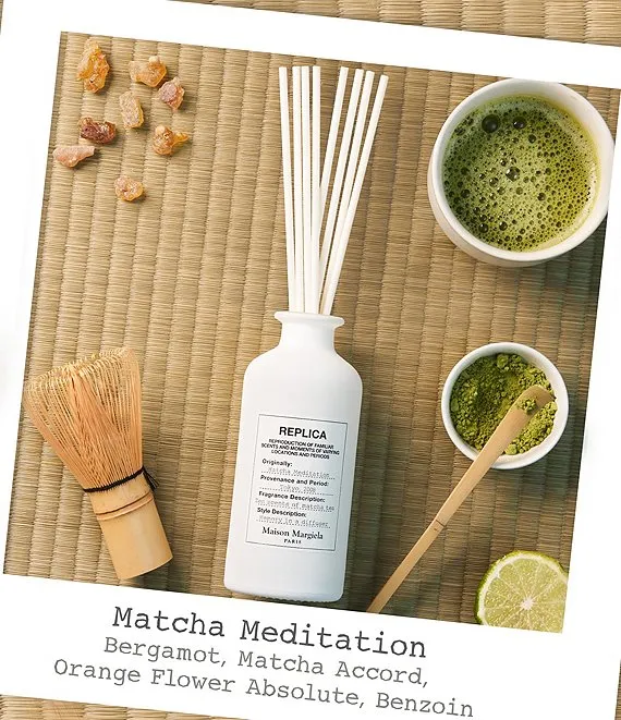 This home fragrance diffuser blends matcha accord and warm benzoin absolute with notes of bergamot essence and luminous orange blossom absolute to evoke the peaceful sensations brought by meditation.