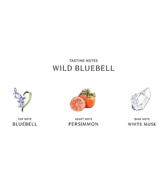 The combination of Wild Bluebell with Wood Sage & Sea Salt creates a cool woody scent, dewy with wild flowers and a touch of sea salt freshness.